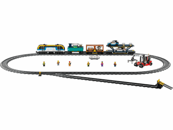 De set bevat een volledig spoortraject met gebogen en rechte rails, een laadstation met een kraan en verschillende goederen die verplaatst kunnen worden. Inclusief minifiguren van een treinmachinist, een vrachtwerker en een ingenieur om de speelervaring compleet te maken.